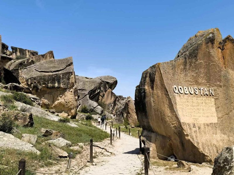 Gobustānas Nacionālais parks (~70 km uz dienvidiem no galvaspilsētas). Tas ir slavens ar seniem klinšu grebumiem un Mēness virsmai līdzīgo ainavu. Dubļu vulkāni. Transfērs uz Bibiheybatas mošeju un pasaulē pirmās mehāniski urbtās naftas akas apskate.