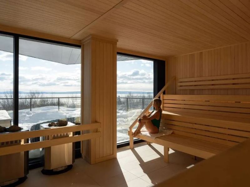 Galvenais viesnīcas restorāns Le Marché nodrošina maltītes visas dienas garumā plašā bufetes formātā, ir pārstāveta starptautiskās un vietējās kvebekiešu virtuves izvēle. Le Chalet piedāvā augstākas klases atpūtas zonu un šis restorāns specializējas vietējo delikatešu radošā interpretācijā, izmantojot sezonālas sastāvdaļas (var būt nepieciešams iepriekšējs pieraksts). Savukārt Terroir & Co ir specializētais restorāns ģimenēm. Produktu izvēlē restorāni liek spēcīgu uzsvaru uz vietējiem Charlevoix reģiona piegādātājiem, tādēļ gandrīz 80% no visām izmantotajām sastāvdaļām tiek iegūtas Kanādā.